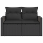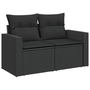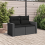 2 személyes fekete polyrattan kerti kanapé párnával
