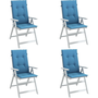 4 db melange kék szövet magas háttámlájú székpárna 120x50x4 cm