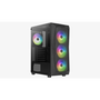 - Három 12 cm-es ARGB ventilátorral van felszerelve a ház elején és egy 12 cm-es ARGB ventilátorral a ház hátulján