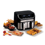 Az Air Fryer Duallal kétszeres mennyiségű ételt készíthetünk el, melyhez mindössze 1 evőkanál olaj szükséges. Az így elkészült étel ízletes és egészséges lesz.