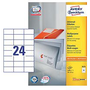 Avery Etikett címke, 70 x37mm, univerzális, 24 címke/ív, 100 ív/doboz, fehér (3474)