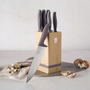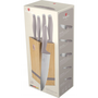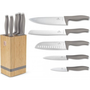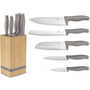 Késkészlet - szakácskés, kenyérvágó kés és santoku, nyél anyaga műanyag, penge anyaga rozsdamentes acél, késtartó a csomag része, 6 darab a készletben