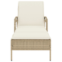 bézs polyrattan napozóágy párnával 63x200x81 cm
