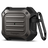 Bluetooth fülhallgató töltőtok tartó, szilikon, vezeték nélküli töltés támogatás, karabiner, Apple AirPods 3 kompatibilis, Spigen Tough Armor, fekete