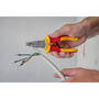 Fogó VDE krimpelő fogó 180 mm, a professzionális kézműveseknek olyan szerszámokra van szükségük, amelyek könnyen használhatóak és megfelelnek minden jogszabályi követelménynek. A Bosch Professional VDE krimpelő fogóval huzalvéghüvelyeket és félkör alakú profilokat lehet préselni a karmantyúk és vezetékek rögzítésére, még feszültség alatt álló részekkel való váratlan érintkezés esetén is. Ez a szabványnak megfelelő szerszám hőre lágyuló poliuretánnal (TPU) van szigetelve. 10 000 V-ig tesztelték, és VDE tanúsítvánnyal rendelkezik 1 000 V-ig a DIN EN/IEC 60900 szabvány szerint. A VDE krimpelő fogó praktikus és sokoldalú, mivel 9 beállítási szintet kínál, és alkalmas 0,25 mm² és 16 mm² közötti huzalvéghüvelyek krimpelésére. Ez a tartós krimpelő fogó króm-vanádium acélból készül. Azáltal, hogy a VDE kéziszerszámokat a Bosch Professional kínálatunkba felveszi, az összes szükséges szerszám megbízható Bosch minőségben elérhető. Robusztus krimpelő fogó huzalvéghüvelyek krimpeléséhez és félkör alakú profilok hüvelyek és vezetékek rögzítéséhez, még feszültség alatt álló részekkel való váratlan érintkezés esetén is. Ergonomikus kialakítással és puha markolattal rendelkezik. Lógó jel