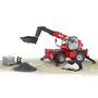 A Manitou MRT 2150 PRIVILEGE teleszkópos targonca építőipari gép az építési területeken való általános használatra, hogy az anyagot szinte bármilyen helyszínre vigye. Az eredetihez hasonlóan a BRUDER modell mindenféle funkcióval rendelkezik. A teleszkópos kar meghosszabbítható, és a szállított villák dőlésszöge a kar szögének megfelelően beállítható. Az emelővillák cseréjére egy vödör (tartozék) vagy egyéb tartozék is rendelkezésre áll a BRUDER-től, hogy több funkciót biztosítson. A targonca természetesen 360 ° -kal elforgatható az anyag minden oldalra történő elosztásához. Az eredetihez hasonlóan a stabilitást négy teleszkópos tartó biztosítja. A négykerék-kormányzás (kis fordulási sugár) különleges tulajdonság. A kormánykerék kézikerékét a nyitott vezetőfülke mögötti forgószerkezetre helyezték, így a játék során könnyen elérhető. A kormánymozgást fogaskerekek segítségével továbbítják a forgószerkezet forgógyűrűjén keresztül az alváz kormányszerkezetéhez? a játékok számára innovatív megoldás, amely növeli a szórakozást. Ez teszi ezt a modellt és annak sok funkcióját a gyerekek örömére.