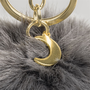 Pompom alakú kulcstartó két színben, sötét és világos szürke színben. Arany színű fémkarikával és karabinerrel. Átmérője 8 cm. Arany függő hópehellyel és félholddal. A szín nem választható.