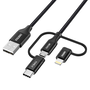 Choetech IP0030 3in1 USB Type-A apa - Micro USB Type-B / Lightning / USB Type-C apa Adat és töltő kábel - Fekete (1.2m)