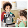 Hogyan is ismerkedhetnének meg a gyerekek jobban a kávéfőzés művészetével, ha nem egy igényesen kidolgozott, részletgazdag játék kávéfőző segítségével? A Casdon DeLonghi La Specialista kávéfőző szettje mindent tartalmaz, amire a kis baristáknak szükségük lehet egy ínycsiklandozó játék kávé elkészítéséhez: műanyag poharakat, szűrőkart és portaszűrőt, americano kávébetétet és még egy tejeskancsót is. Az eredetihez a megszólalásig hasonlító DeLonghi játék kávéfőző valósághű hangeffektekkel teszi még élvezetesebbé a játékélményt. Az eszközök elférnek a játék kávéfőző hátoldalán található mélyedésekben, ezáltal tárolásuk praktikusan megoldható.