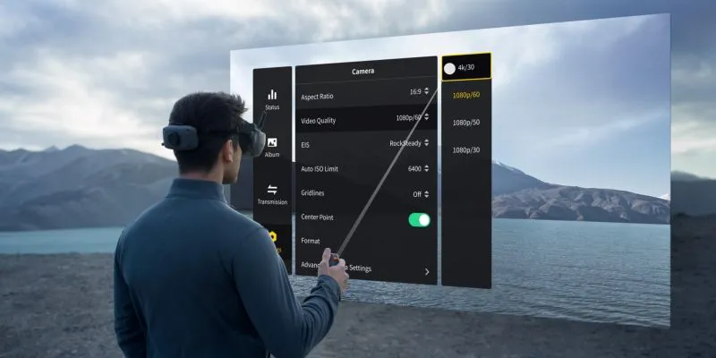 A DJI RC Motion 3 AR-kurzorként használható felszállás előtt, vagy fékezés után lebegésnél. Ezzel könnyedén aktiválhatod a funkciókat és módosíthatod a beállításokat anélkül, hogy levennéd a kezét az RC Motion 3-ról.