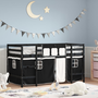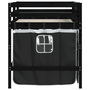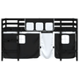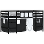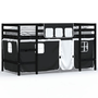 fehér-fekete tömör fenyő gyerek galériaágy függönnyel 90x200 cm