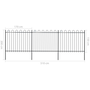 fekete hajlított tetejű acélkerítés 5,1 x 1,5 m
