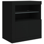 fekete tálalószekrény LED-világítással 181,5x37x67 cm