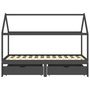 fiókos sötétszürke tömör fenyőfa gyerekágykeret 90 x 200 cm
