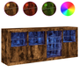 füstös tölgyszínű tálalószekrény LED-ekkel 164 x 37 x 67 cm