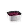 A szögletes tároló rozsdamentes acélból és műanyagból készült.