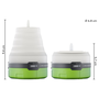 A robusztus műanyag házzal ellátott 3 az 1-ben összecsukható lámpa állólámpa, függőlámpa és zseblámpa egy praktikus termékben. Visszahúzható karabinerrel látták el a felakasztáshoz és fluoreszkáló gumival az éjszakai fény funkcióhoz.