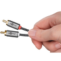 - Rendkívül rugalmas prémium RCA-kábel vékony fémdugóval, hajlításvédelemmel és színben hozzáillő textilkábellel
