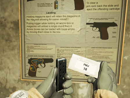 - Klasszikus lőfegyverek lenyűgöző választékát tartalmazza, mint például az AKM Kalashnikov, PM Pistolet Makarova, SKS Carbine, M9 Beretta, PPsh, FN SCAR és még sok más a hozzáillő lőszerrel. Valósághű interakció, kézi tárbetöltés különböző lőszertípusokkal és fegyvertartozékokkal.
