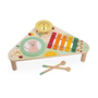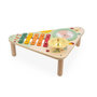 A francia Janod márka Napfény sorozatából származó Zenélő asztal a tökéletes első zenei játék a gyermek számára, amely segít a hallás, a ritmusérzék és a zenei képességek fejlesztésében. Emellett támogatja a képzelőerő, a koncentráció, a kitartás és a motoros koordináció fejlődését is. Az asztal három lábbal, biztonságos, lekerekített élekkel és 3 hangszerrel rendelkezik: egy fémdob cintányérral, egy xilofonnal öt fém billentyűvel (5 hang) és egy membrános dobbal. A készlet két fa dobverőt és egy lyukat is tartalmaz az asztalon, ahová a dobverőket játék után be lehet tenni. Minden hangszer más hangzást ad, így gyermeke számára lehetőség nyílik a különböző hangok felfedezésére. A játékot gyönyörű, napsütötte színvilág jellemzi - a dobra Leo, a kis oroszlán van festve, az asztallapot pedig mancsnyomok és virágmotívumok díszítik.