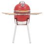 A kerámia grillező nagyon erős, felhajtható fedéllel, szellőzőnyílással és a tetején hőmérővel van ellátva. A kétrétegű szellőzőnek köszönhetően könnyedén szabályozhatja a levegő áramlását és a hőmérsékletet. A két lehajtható oldalsó polc helyet biztosít a grillételek tárolásához. A kiváló minőségű kerámia külső rücskös mázbevonata nagyon erőssé és látványossá teszi a grillezőt! A rozsdamentes acél lábak extra stabilitást biztosítanak a grillsütőnek.