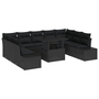 Kerti kanapé szett 10 db Fekete Rattan, poliészter párnák