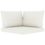 kétszemélyes fenyőfa kerti raklapkanapé krémfehér párnákkal
