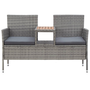 kétszemélyes szürke polyrattan kerti pad teázóasztallal 143 cm