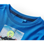 Ez a gyerek póló hosszú ujjú, kerek nyakkivágással és egyenes modellel rendelkezik. Ezen a kobaltkék pólón egy focista látható. A hosszú ujjú gyermekpóló 100% pamutból készült, amelyet szilikonos és enzimes mosással kezeltek a puha és kényelmes tapintás érdekében.