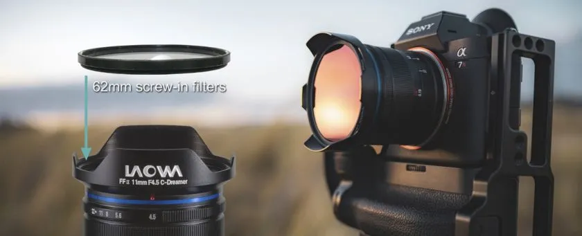 Az ultraszéles látószög ellenére az objektívhez egy speciálisan tervezett szűrőtartó is tartozik, amely lehetővé teszi a 100 mm széles szűrők használatát komolyabb vignettálás nélkül. Ez a becsavarható szűrőkön kívül egy extra lehetőséget kínál a fotósoknak.