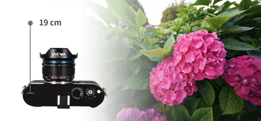 Az objektív rendkívül közeli, 19 cm-es fókusztávolsággal rendelkezik (a témától az érzékelőig), így a fotósok makró jellegű felvételeket készíthetnek ultraszéles perspektívával. Emellett szép „váll feletti felvételt” is készíthet, amely jelenlét érzetét kelti.