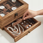 Óradoboz, Ekszerdoboz Üvegfedéllel, 27 X 13 X 20 Cm, Rusztikus Dió