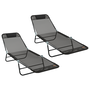 Összecsukható Napozóágyak 2 db Fejtámlával Fekete Textilén