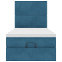 Ottomán ágykeret matracokkal sötétkék 100x200cm bársony