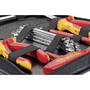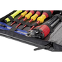 A praktikus PARAT BASIC Wallet Mini szerszámtáska nagyon praktikus, a szükséges szerszám gyorsan és egyáltalán nem tárolható. A szerszámportfólió felső anyaga szintetikus bőr, emellett a mappa kiváló minőségű, kör alakú cipzárral van ellátva. A PARAT BASIC Wallet Mini sokféle alkalmazásra alkalmas, praktikus mérete viszonylag nagy mennyiségű szerszámot tartalmaz, és könnyen és kényelmesen szállítható és szállítható. A szerszámcsomagban 25 gumi hurok van a szerszám rögzítéséhez. A nagyobb részek két párhuzamos gumiszalaggal rögzíthetők, és biztonságos rögzítést kapnak. A szerszámportfólió használható térfogata három liter, 400 gramm súlyú.