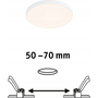 A Veluna VariFit Edge kerek beépített panel modern, keret nélküli kialakításával, finom fehér színben lenyűgöző. 90 mm átmérőjével és 3000K színhőmérsékletével a panel magas, egyenletes fénykibocsátást biztosít. A rugalmas VariFit technológiának köszönhetően a szorítórugók fokozatmentesen állíthatók 50 és 70 mm között a beépítéshez. Ez azt jelenti, hogy a panel meglévő és új fúrásokba is beépíthető. 50 mm-es furatátmérőnél 35 mm-es üregmélység szükséges. A szatén műanyag borítás finom fényeloszlást és sugárzó, kellemes meleg fehér fényt biztosít.