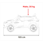 - Jármű méretei: Hossza 105 cm, szélessége 62 cm, Magassága 48 cm
