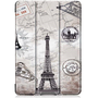 Samsung Galaxy Tab S9 FE (10.9) SM-X510 / X516B, mappa tok, Eiffel torony, térkép minta, Trifold, szürke