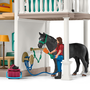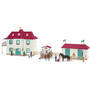 A Schleich Horse Club Lakeside vidéki háza és istállója Hannah és szülei otthona. Ez a hatalmas ház rengeteg játéklehetőséget és fantáziadús történeteket kínál. A csomagban található Hannah figura teljesen mozgatható, ülni, lovagolni és állni is tud.