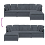 sötétszürke bársony moduláris kanapé zsámollyal&párnák