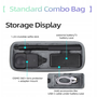 A táskát úgy tervezték, hogy elférjen benne a DJI Osmo 360 kamera objektíves napellenzővel és rögzítő adapterrel, három akkumulátor a töltőtokban, valamint egy összehajtogatott 1,2 m-es Invisible Selfie Stick. Emellett extra hely van a kábelek számára és egy hálós cipzáras zseb, ahová például memóriakártyákat tehetsz.