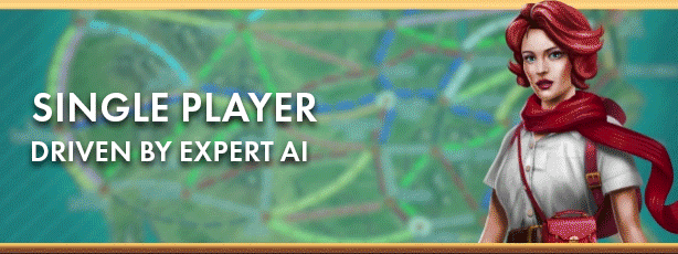 Az innovatív, adaptív mesterséges intelligencia rendszerrel működő egyjátékos mód kihívást jelent az új és a tapasztalt játékosok számára. Az új Ticket to Ride AI rendszer a legjobb stratégiákat használja, több mint száz mesterjátékos tanulásán alapul, és több millió szimulált játékon keresztül tökéletesítik. A minden igényt kielégítő dinamikus nehézségi beállításokkal az egyjátékos játékok valósághű kihívást jelentenek, és a játék előrehaladtával alkalmazkodnak a játékos stílusához és viselkedéséhez.
