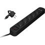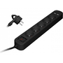 Túlfeszültségvédő Szalag, 5 db 2P+Z Aljzat, 1,5 M Kábel, Kétsávos, Megvilágított Kapcsolóval. Túlfeszültségvédő. 10A/230 Vac, 2XUSB 2.1A Töltő. Lapos Dugó