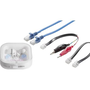 Adó · Vevő · RJ45 kábel · RJ11 kábel · Krokodilcsipeszes kábel · Fülhallgató · 1 db 9 V-os és 3 db ceruzaelem · Használati útmutató.